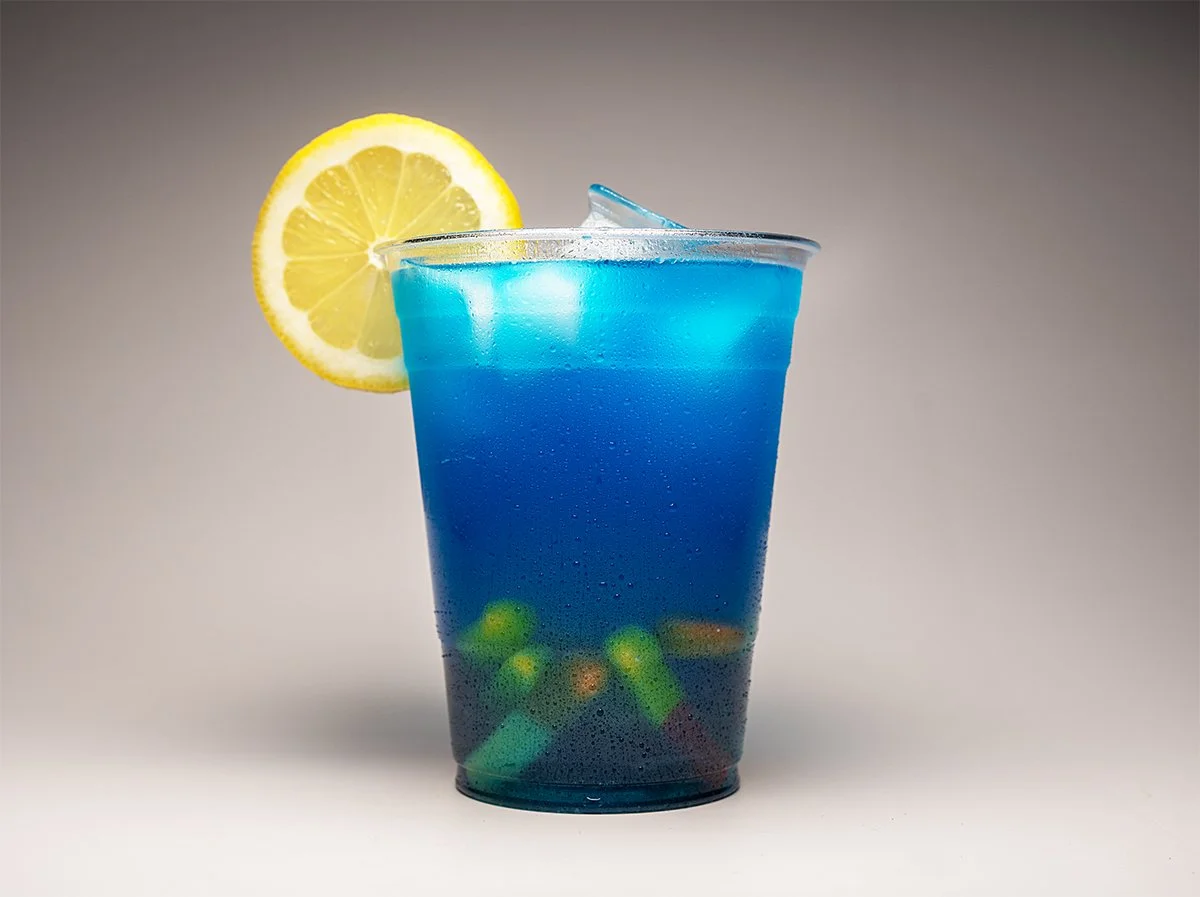 Lemonade (Lemonade, blue raspberry syrup, coconut syrup, sour gummy worms)
